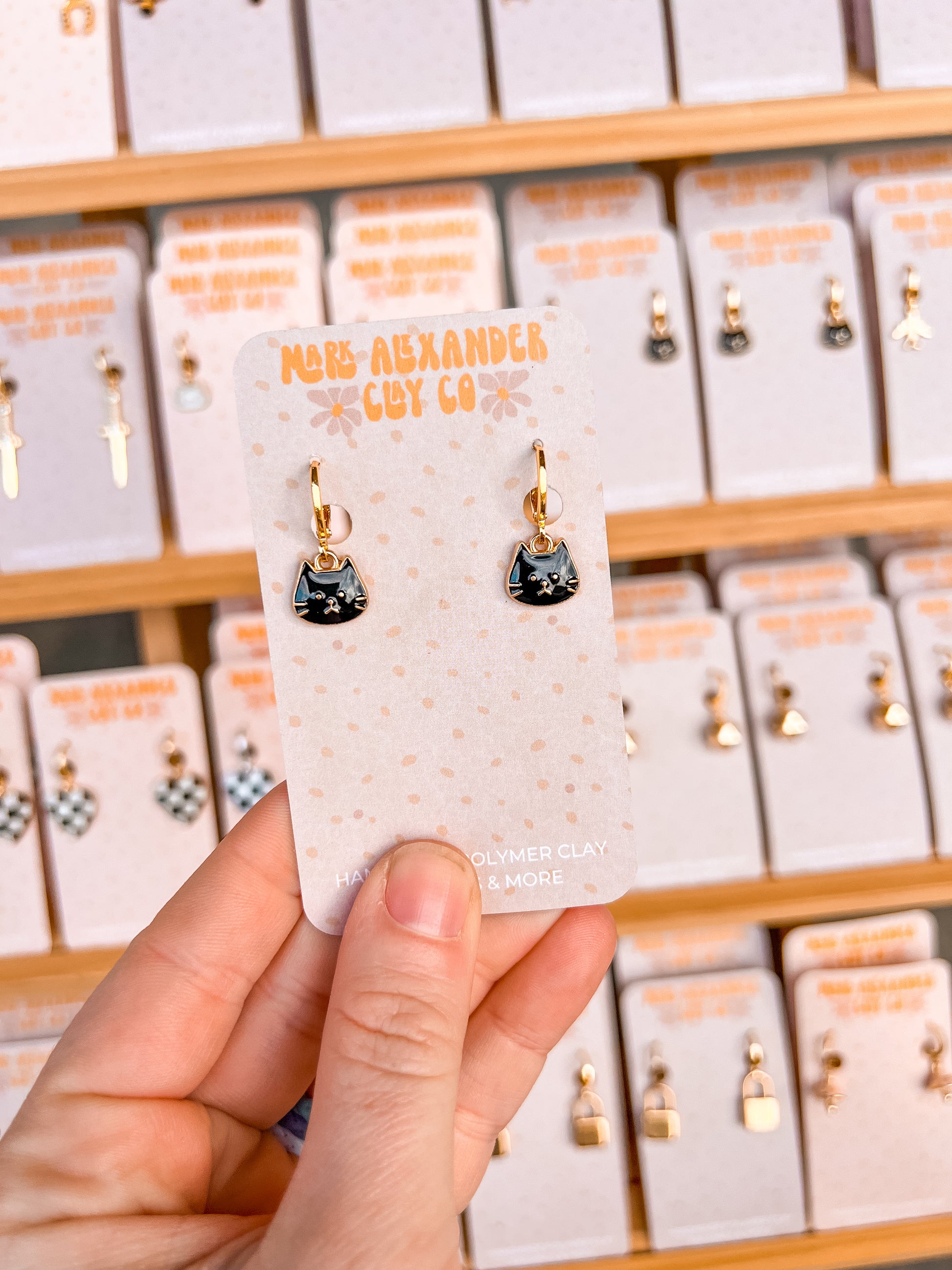 Gold Plated Black Cat Huggies