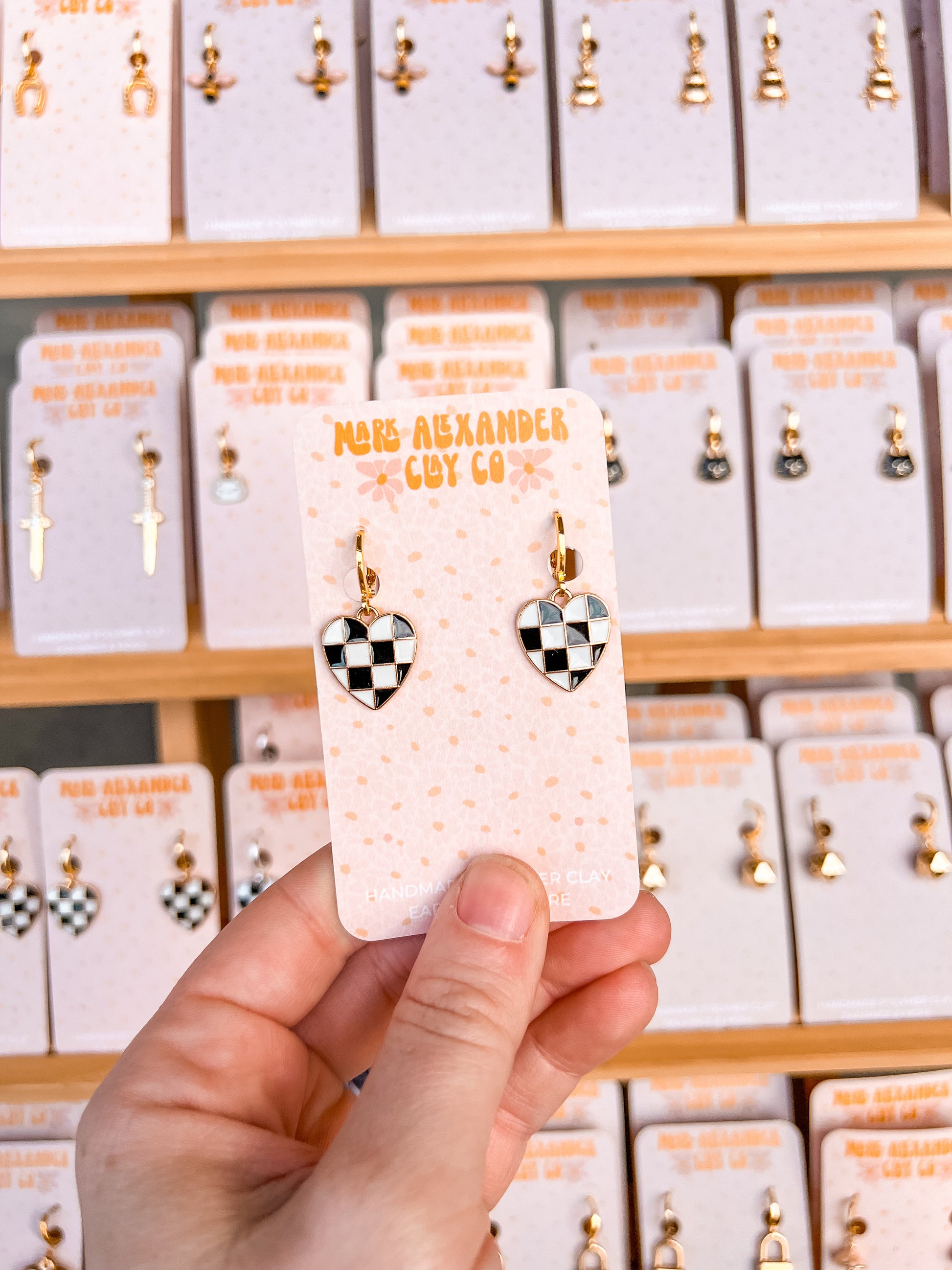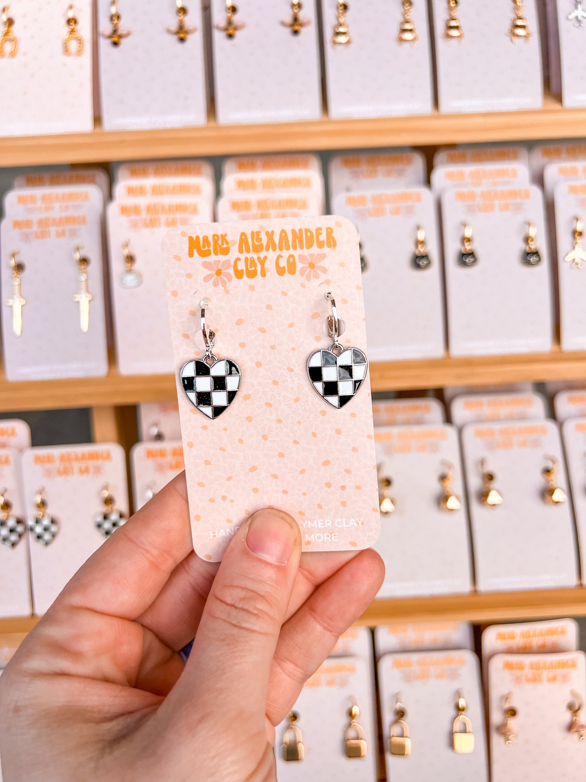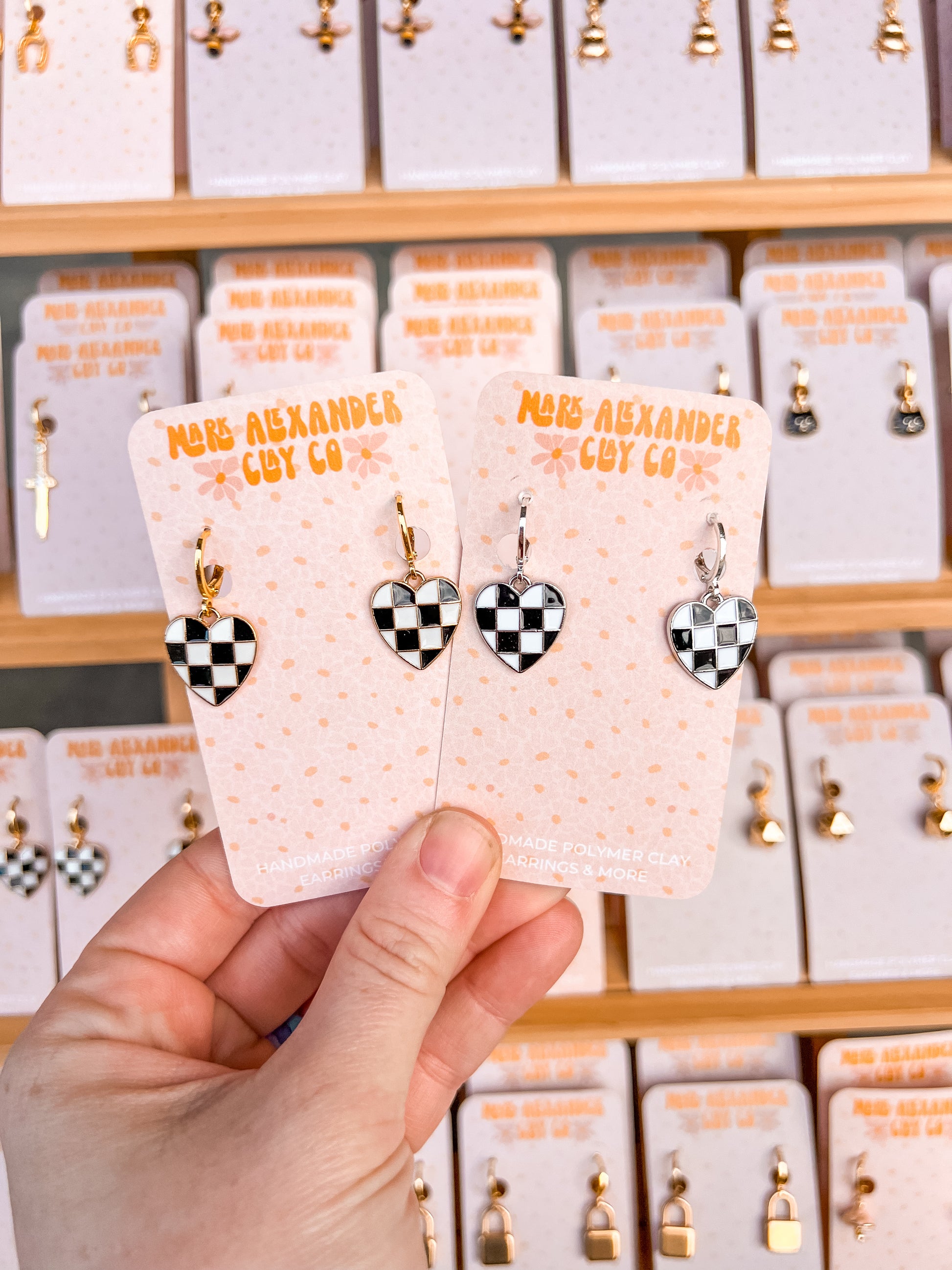 Silver & Gold Plated Checkered Black/White Heart Huggies